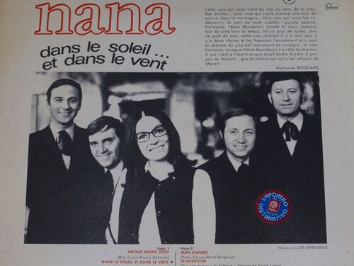 NANA MOUSKOURI “見知らぬ人” 写真上は、アルバム・タイトル≪DANS LE SOLEIL ET DANS LE VENT≫(FONTANA 6399 014 1969 FRANCE)の洋盤LP裏面のスナップ写真です。このLPは、全ての曲がフランス語歌詞で編集されており、メロディーが美しく優れた歌詞の歌…