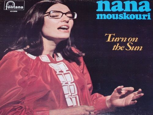 NANA MOUSKOURI “世界の果てに美しく” 写真上は、アルバム・タイトル≪TURN ON THE SUN≫(FONTANA 6312 008 1971 CANADA)の洋盤LPの表面、写真下はその裏面です。本LPは、サイモンとガーファンクルやボブ・ディランの歌のほか、マノス・ハジダキスの曲など…